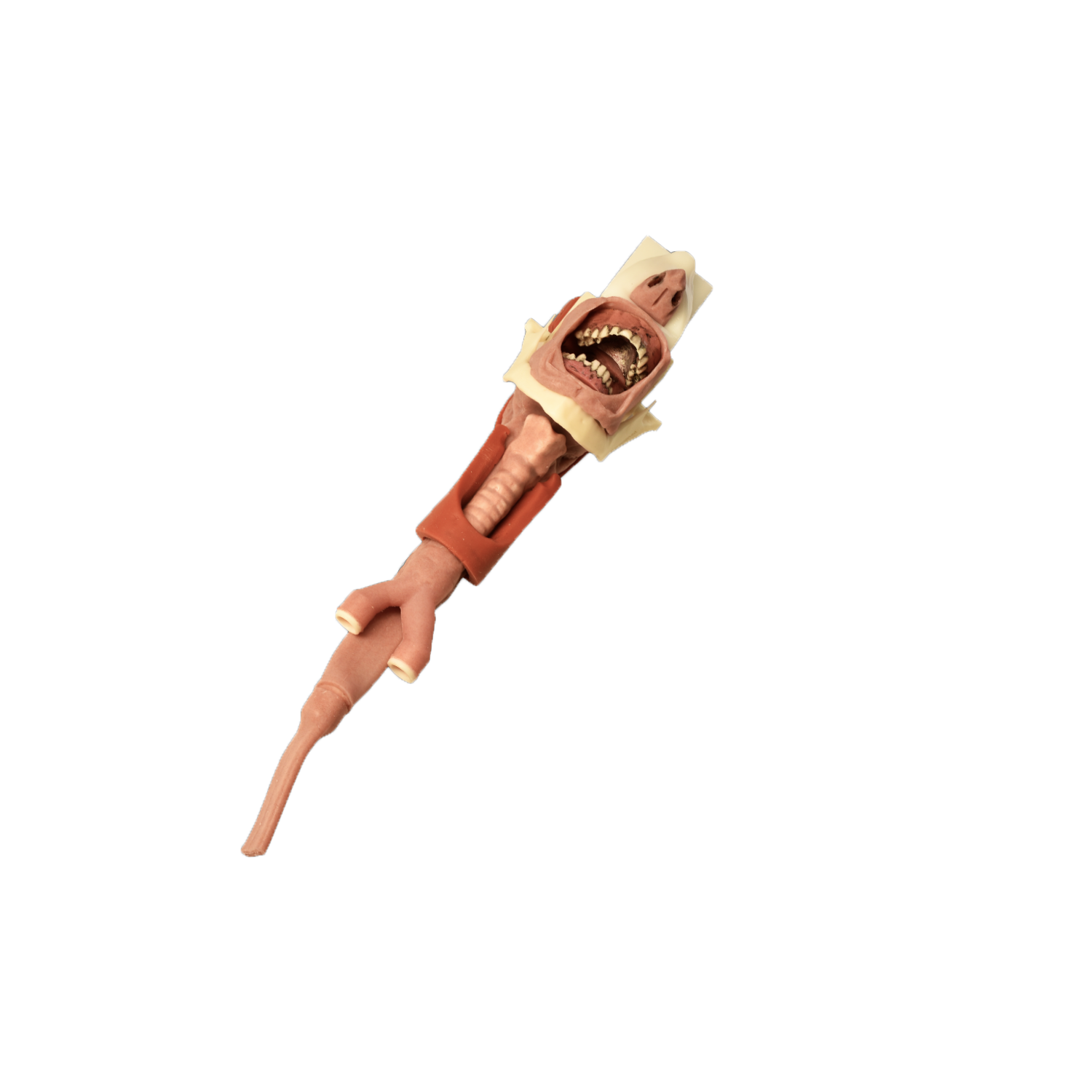- Anatomically correct epiglottis, tongue, vocal cords and tracheal rings